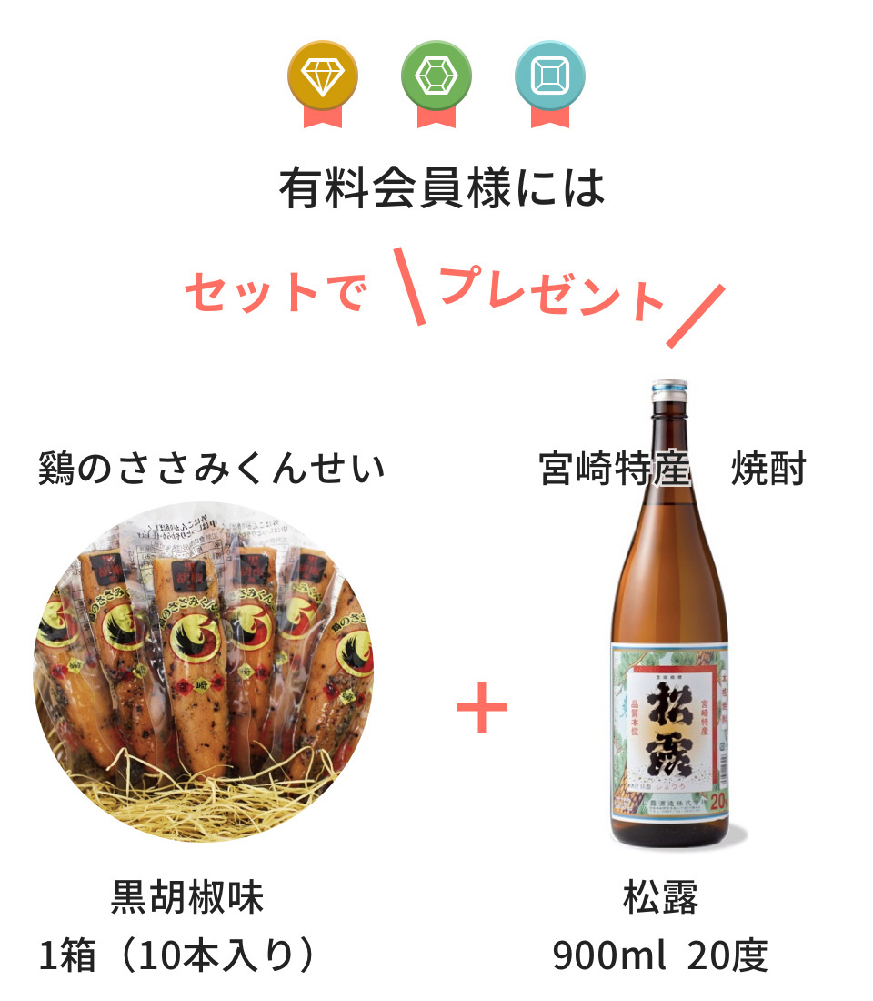 | 原材料 | 鶏肉(宮崎県産ささみ)、食塩(宮崎県産海塩)、香辛料 |