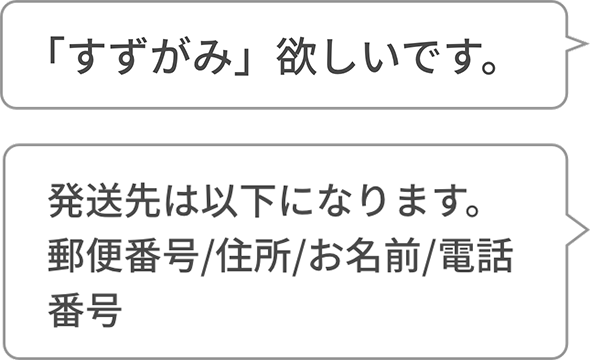 おしるこコンシェルジュ宛に、チャットにて以下2点の情報をお送りください。チャット受付時間は、平日10時〜18時となっております。