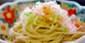 丸岡町を訪れて味わいたいものといえば、地産地消の極みとも言える丸岡産100%の蕎麦粉を使った手打ちそばです。手打ちそばを体験できる店舗もあるので丸岡城を見ながら自身で打ったそばに舌鼓を打つのも一興です。中でも「一筆啓上茶屋」蕎麦は絶品。うぐいす色の実を石臼で丁寧に挽いて手打ちした「越前おろしそば」は香りも高く別格の美味さです。